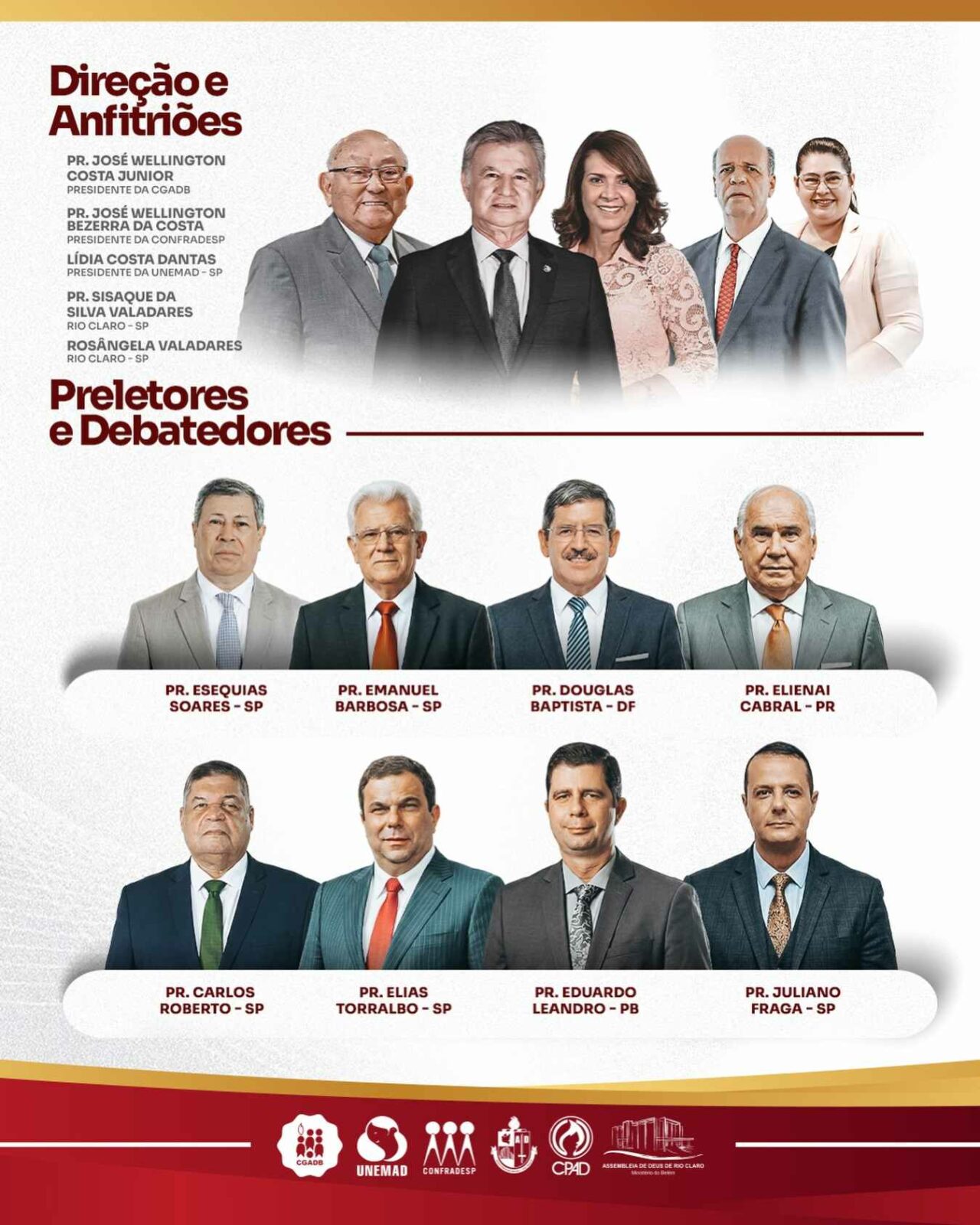 Destinado a pastores, obreiros e líderes em geral, o evento incluirá plenárias exclusivas às respectivas esposas, em um espaço exclusivo a elas. A programação ocorrerá na Assembleia de Deus de Rio Claro (SP) – Ministério do Belém, presidida pelo Pr. Sisaque da Silva Valadares.