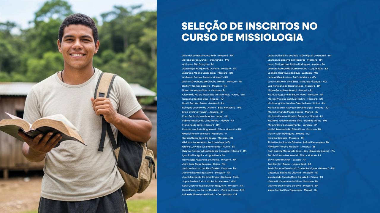 Para finalizar o projeto, a Senami concedeu 65 bolsas para o Curso de Missiologia, beneficiando alunos de vários estados brasileiros. O curso oferece uma base bíblica, teológica e prática sobre missões, preparando líderes, obreiros e vocacionados para compreenderem o propósito missionário da Igreja e atuarem de forma estratégica no avanço do Reino de Deus.